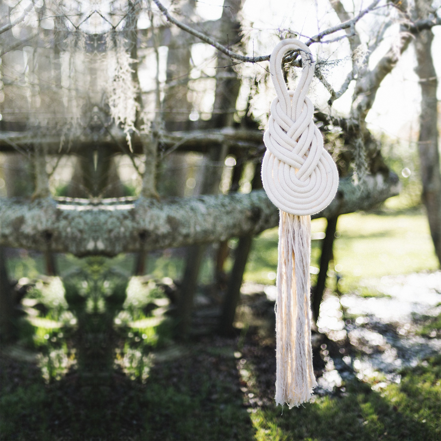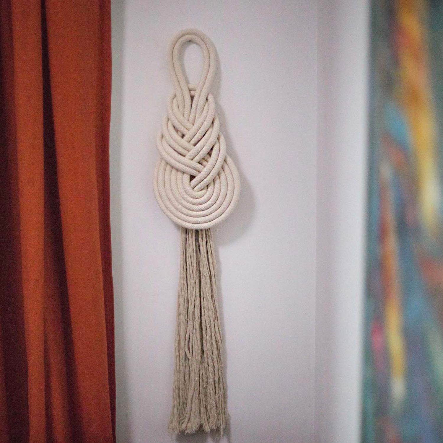 The Pippa Wall Hanging is hand-knotted with a 20x12"  pippa knot and a 2' tassel. This unique piece is a stunning addition to any wall!