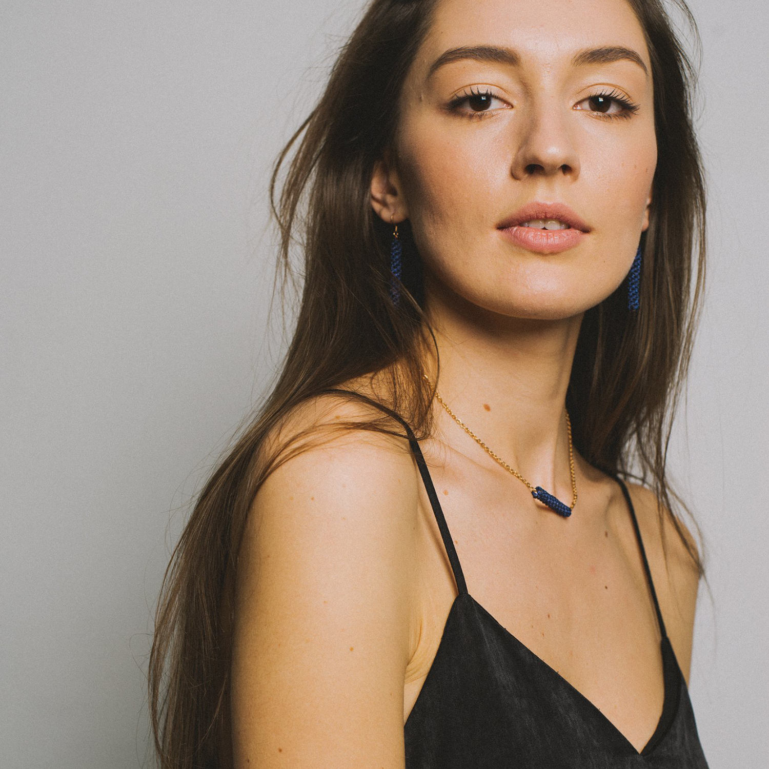 يتم تصنيع كل قلادة يدويًا من سلسلة معدنية مطلية بالذهب الوردي وحبل عالي الجودة تم شراؤه من التاجر المحلي لدينا.