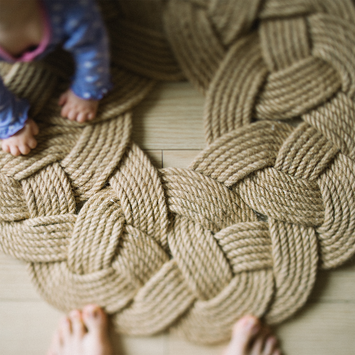 هذه السجادة الصغيرة ذات العقد الدائرية من سجاداتنا المفضلة. مصنوعة من خيط واحد من حبل الجوت الجديد بقطر ١٢ مم. يبلغ قطر السجادة ٢٦ بوصة.