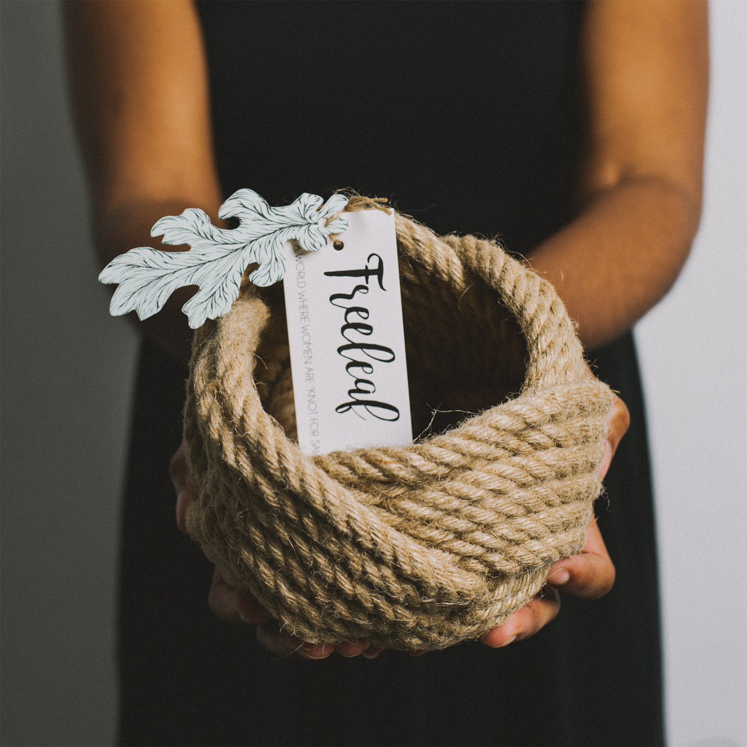 يتم تصنيع كل قطعة من Freeleaf بعناية فائقة من قبل فريق العمل لدينا من النساء القويات اللاتي يتغلبن على الإساءة والاستغلال. يتم إنتاج كل عنصر بطريقة أخلاقية مقابل أجر عادل، ويساعد في توفير الرعاية الشاملة بما في ذلك الاستشارة، التدريب المهني، والمزيد لطاقم الناجيات لدينا. شراؤكم يساعدنا في خلق عالم تكون فيه النساء {ك}غير مخصص للبيع.